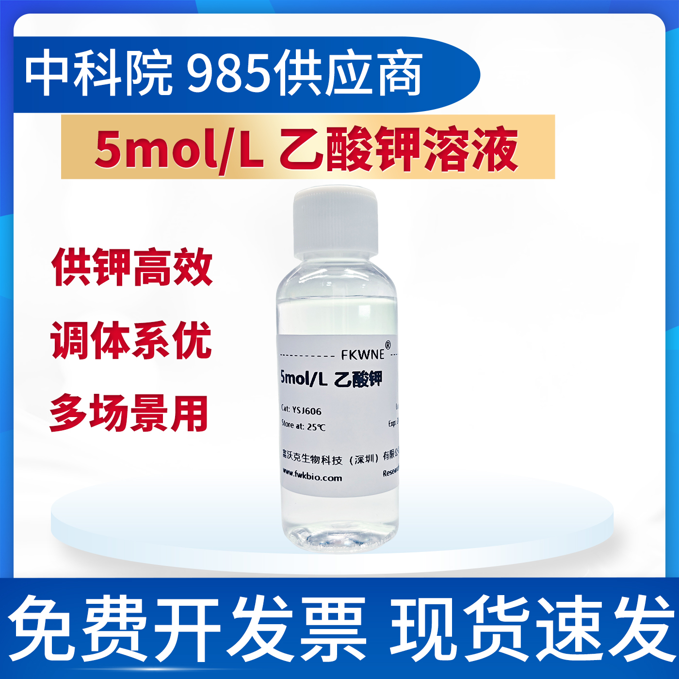 高浓 5mol/L 配方,精准释放 K⁺与乙酸根离子,核酸提取时高效沉淀杂质、蛋白纯化中稳控 pH,轻松适配多类实验场景。