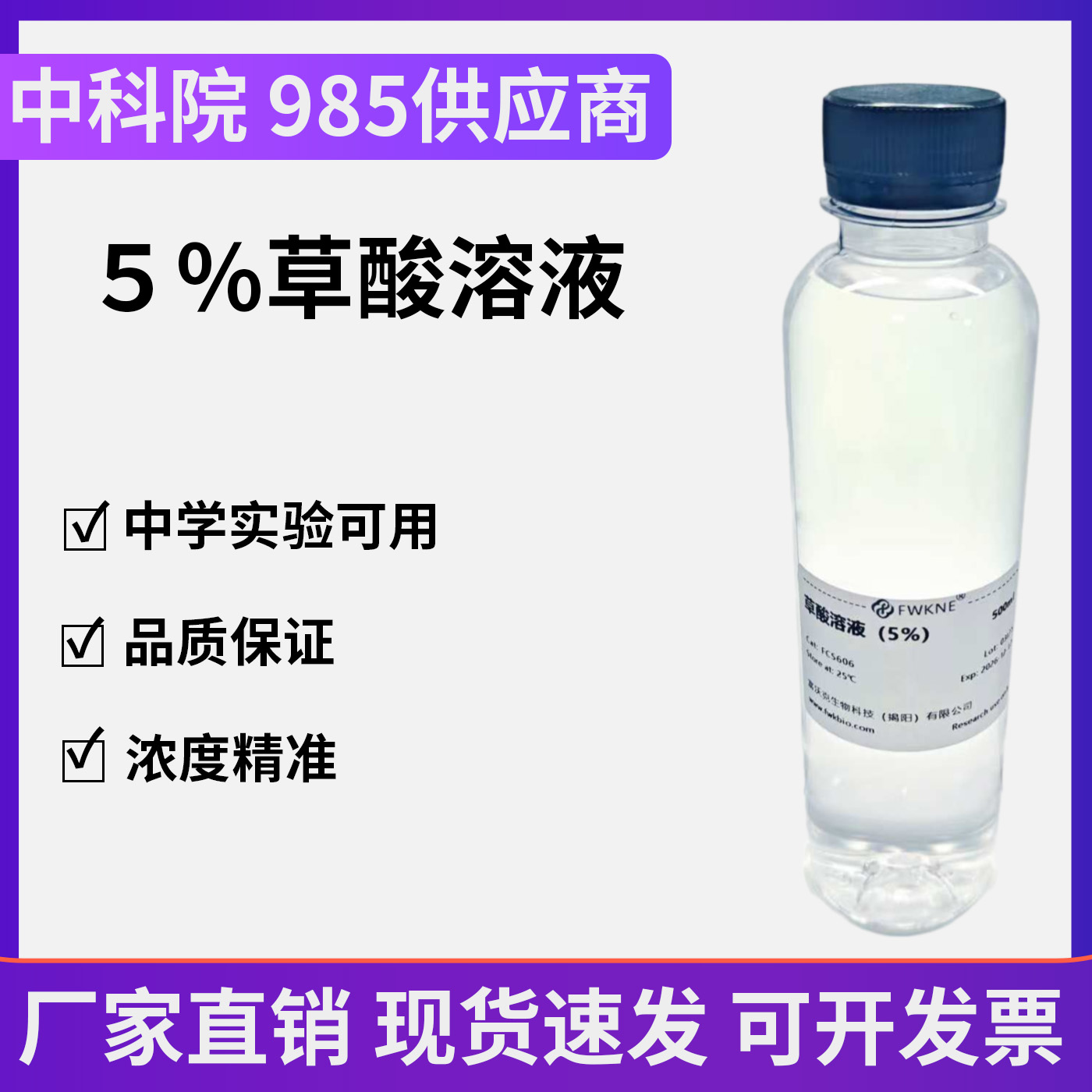 草酸溶液是实验中常用的还原性试剂,由草酸晶体溶解于水制成。呈酸性,具强还原性,可用于校准高锰酸钾溶液、去除金属表面氧化物;在分析实验中,能沉淀钙离子等金属离子。溶液易保存,操作简便,适用范围广。