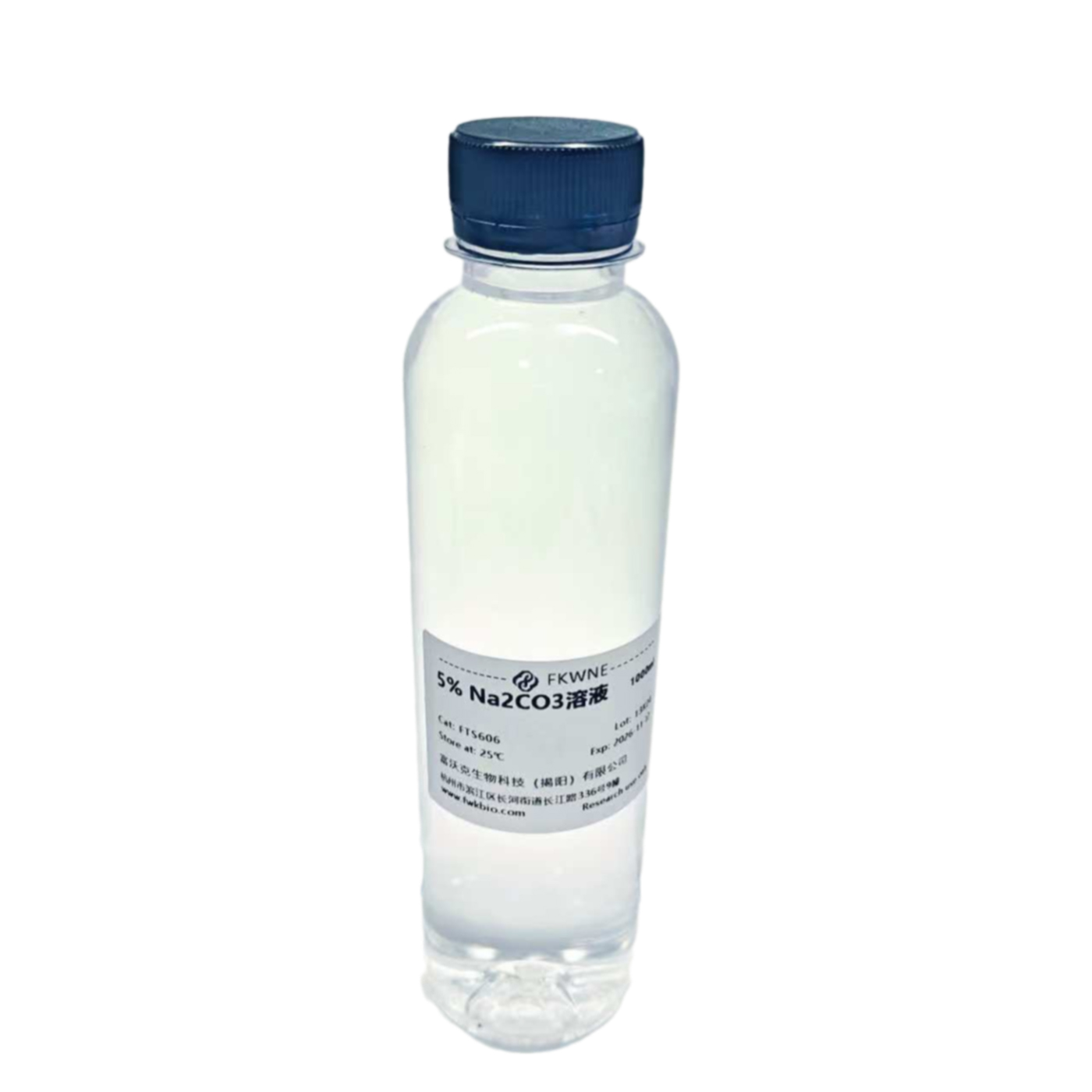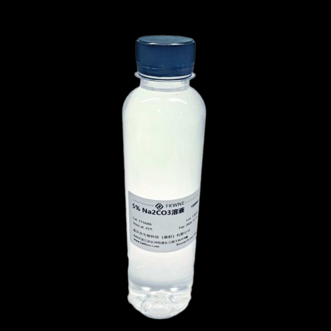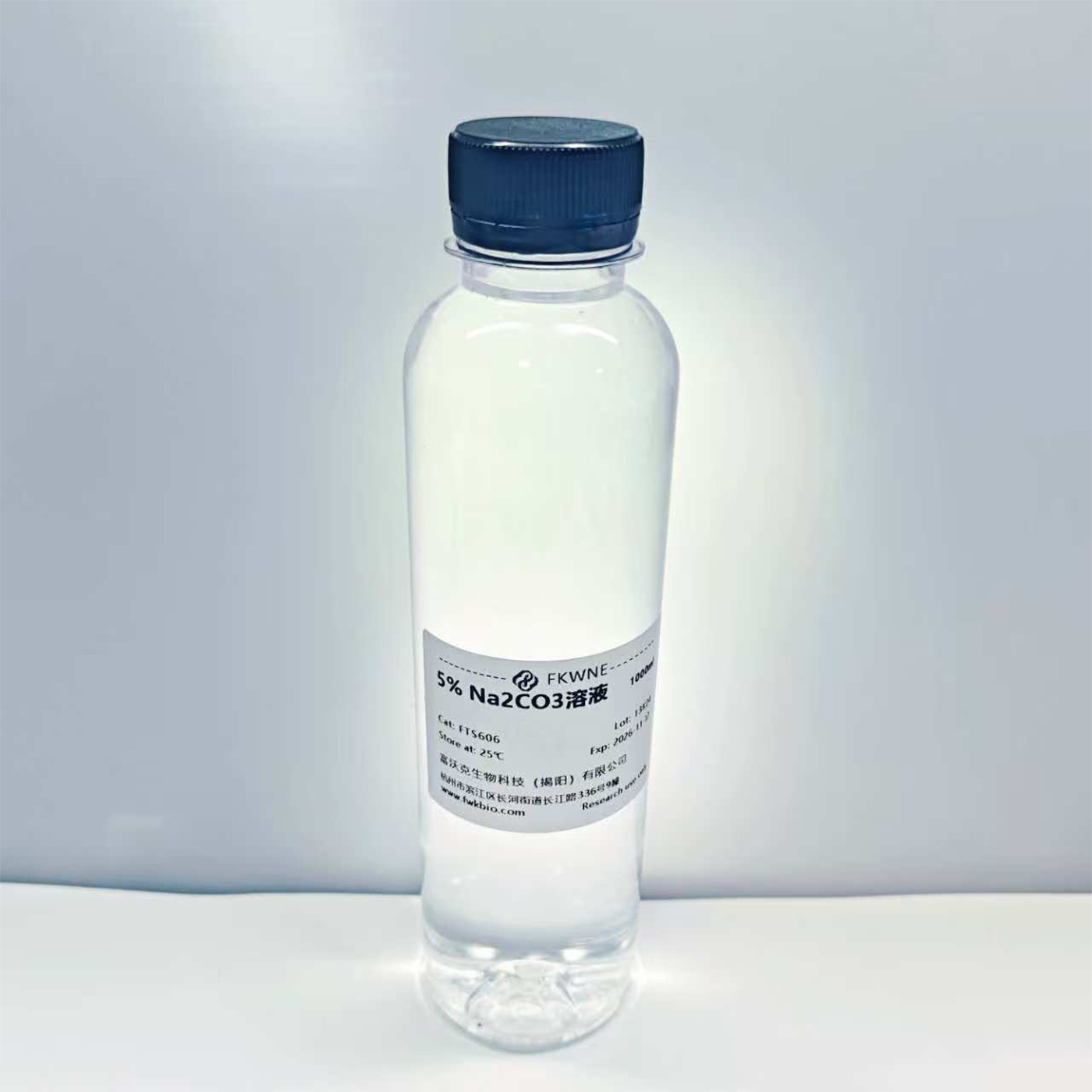 5% 碳酸钠溶液是实验室常用试剂,由碳酸钠按 5% 比例溶于水制成,呈无色透明状,显碱性。可用于中和酸性溶液、沉淀金属离子,也在有机物合成中作碱性介质。溶液易保存,操作简便,是化学分析、合成实验及教学中的实用试剂。