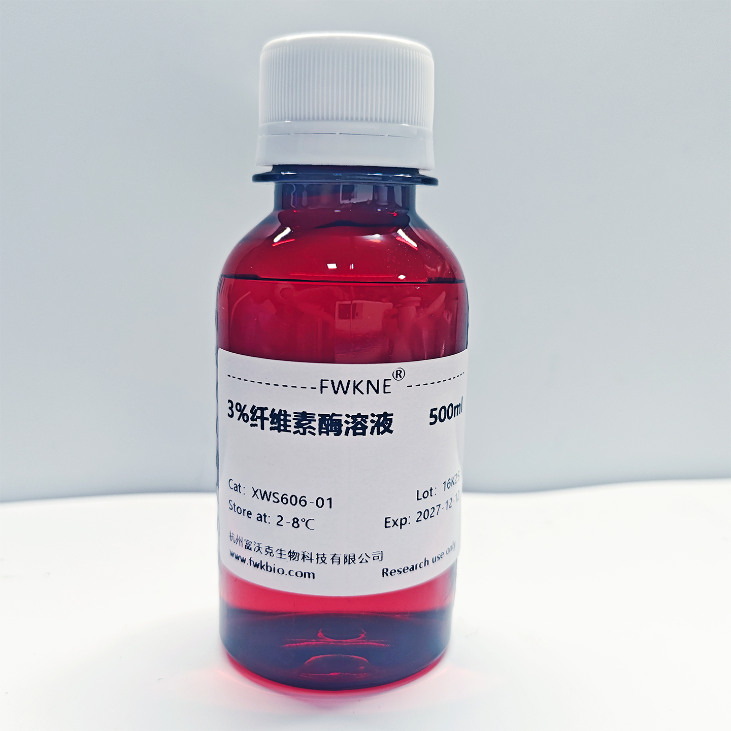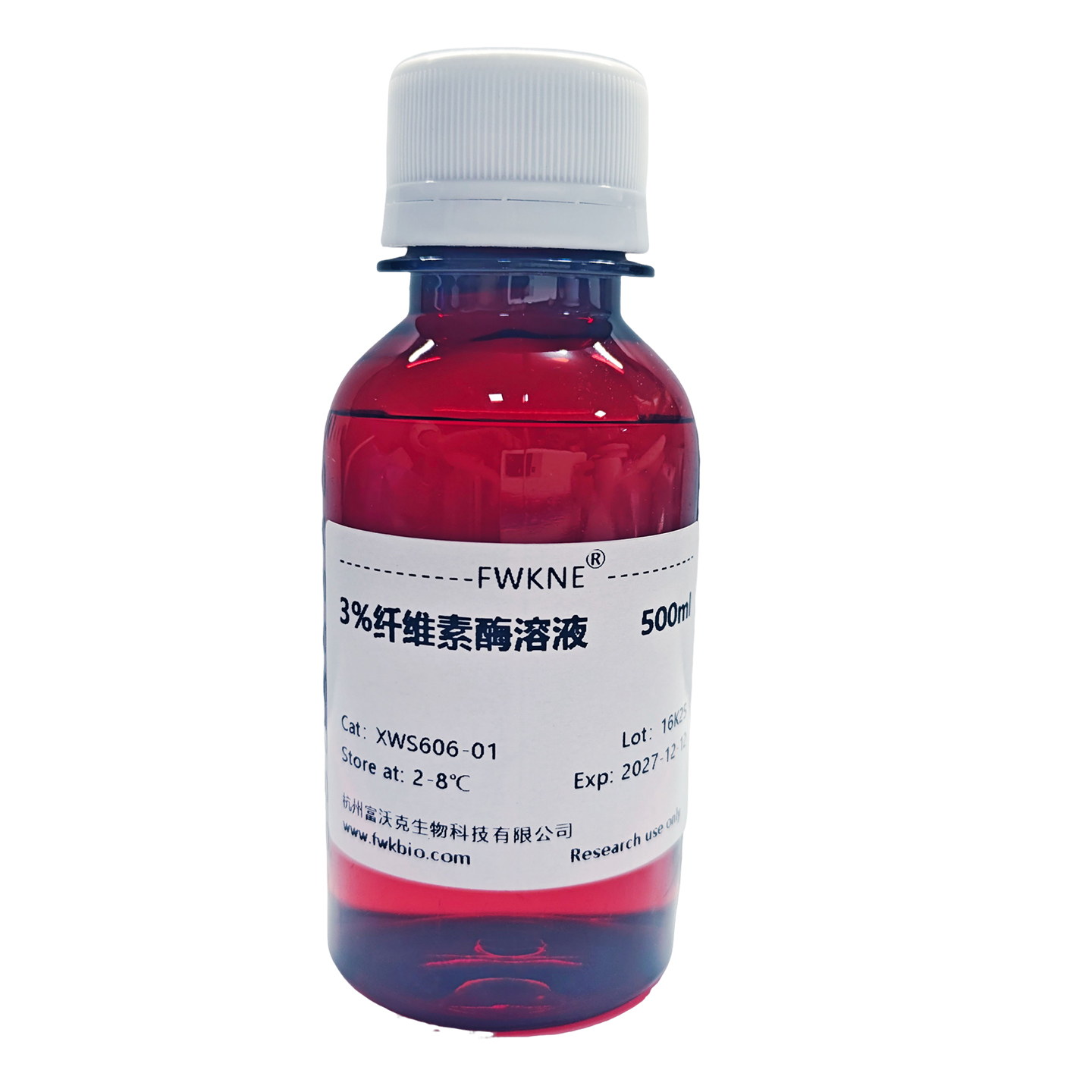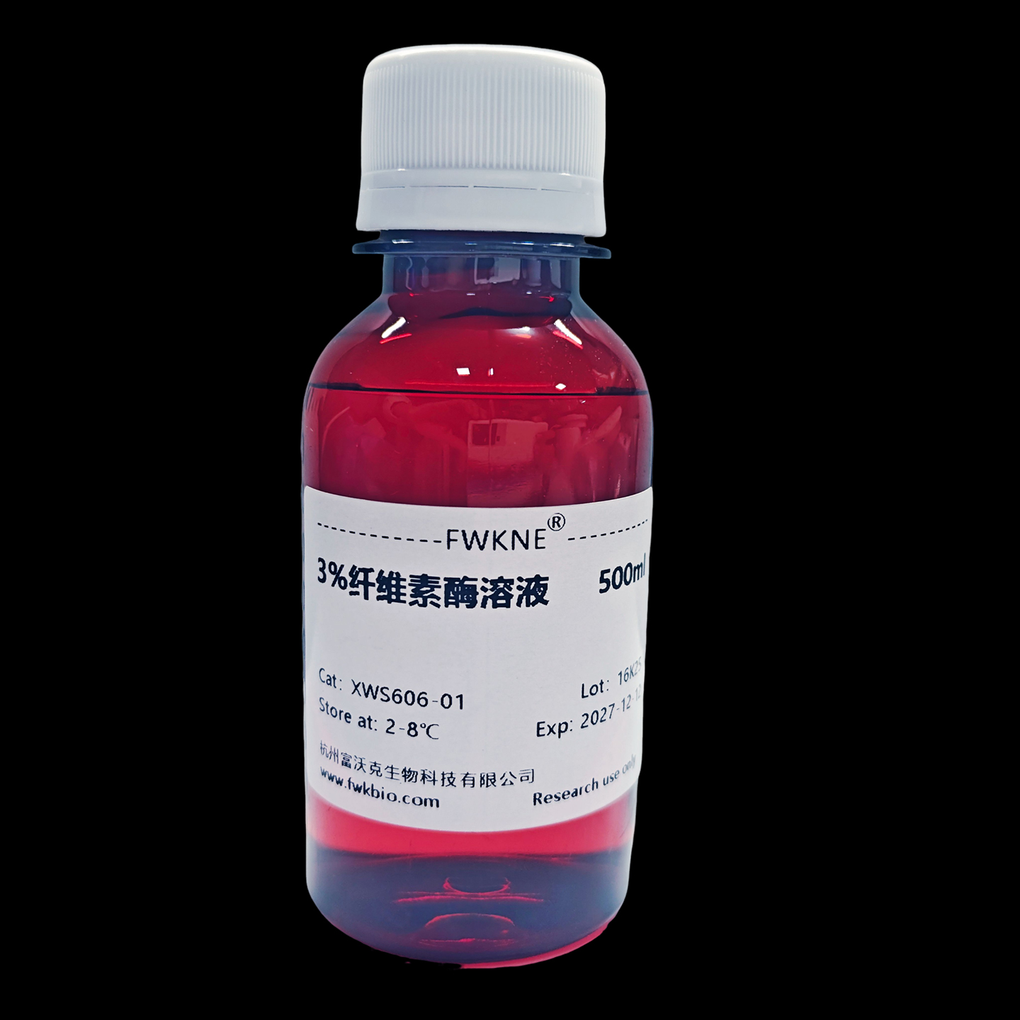 3% 纤维素酶溶液是实验室植物样品前处理关键试剂,可特异性降解植物细胞壁中的纤维素(断裂 β-1,4 糖苷键),适配叶片、茎秆等多种组织,兼具酶解效率与温和性,能有效破除细胞壁结构,助力植物基因组 DNA/RNA 提取,提升核酸得率与纯度,为后续分子实验提供优质样品。