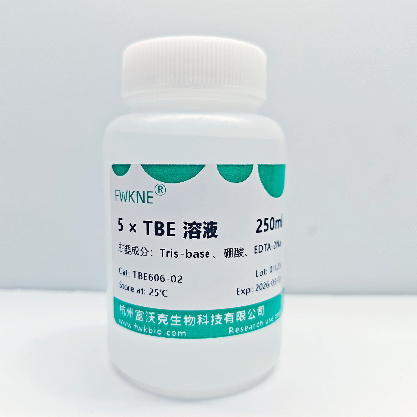 5X TBE缓冲液是一种高浓度核酸电泳缓冲储备液,主要成分为Tris、硼酸和EDTA。可为DNA/RNA琼脂糖凝胶电泳提供稳定的pH环境与离子强度,确保核酸片段的高效分离与清晰条带。其EDTA成分能螯合金属离子,保护核酸完整性。该缓冲液是分子克隆、PCR产物鉴定及 Northern/Southern blot 等实验的基础试剂。