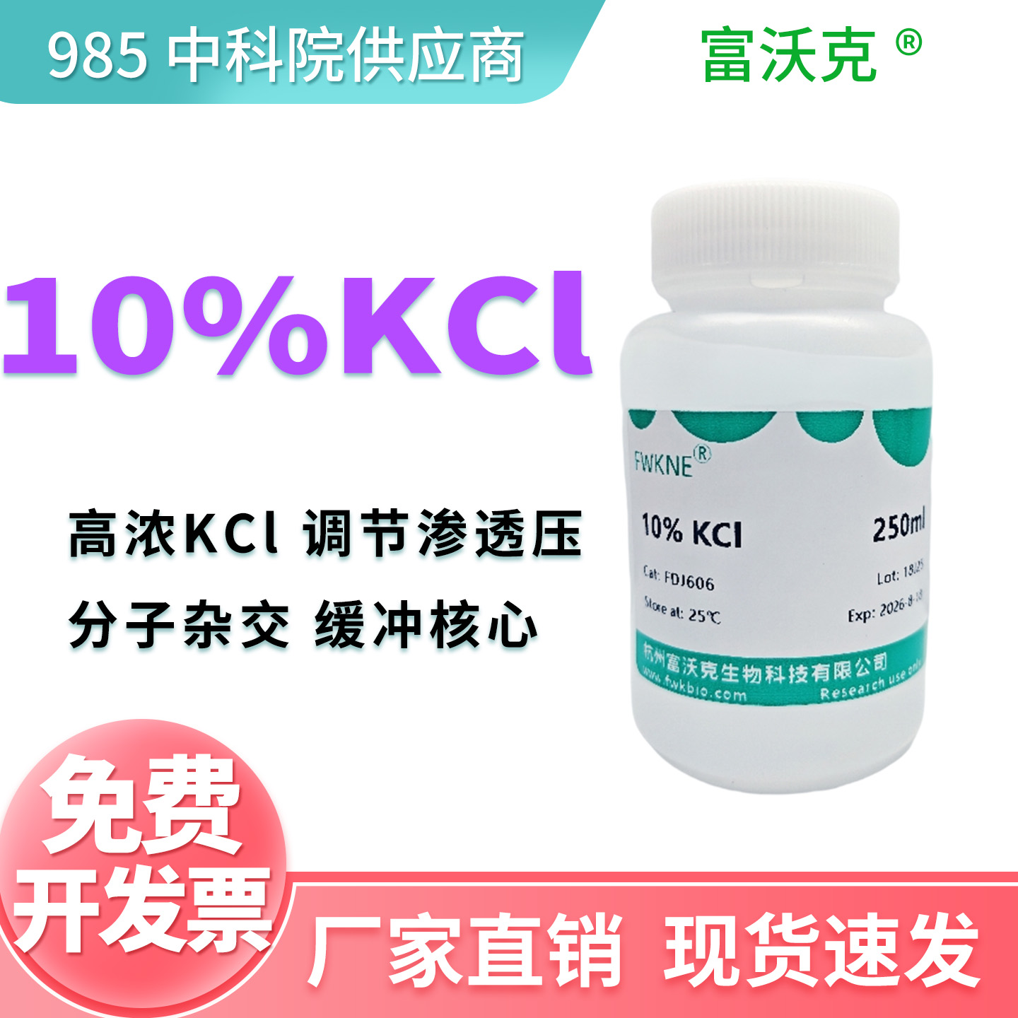 10M KCl是一种极高浓度的氯化钾储存液,在分子生物学与生物化学实验中作为关键储备试剂。其主要功能是为各种杂交缓冲液(如SSC)、裂解液及反应体系提供精确的钾离子来源,用于调节渗透压与离子强度。使用时需严格按比例稀释,是确保核酸杂交、蛋白互作及细胞裂解等实验获得稳定且可重复结果的重要基础组分。