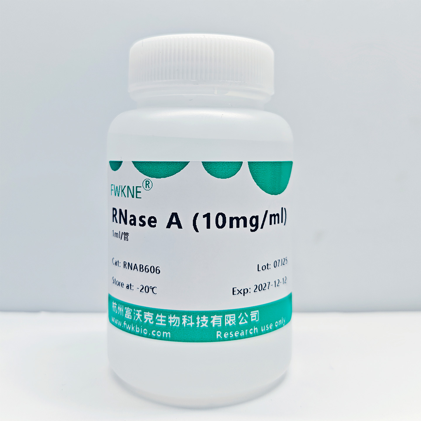 RNase A是一种核糖核酸酶,能特异性水解RNA中的胞嘧啶与尿嘧啶残基,高效降解单链RNA。在分子生物学实验中,其主要用途是在DNA提取与纯化过程中去除RNA污染,如质粒提取、基因组DNA纯化等,从而获得高纯度的DNA样品。该酶作用广泛,在37℃下活性最佳,可通过蛋白酶K或酚-氯仿抽提彻底去除。