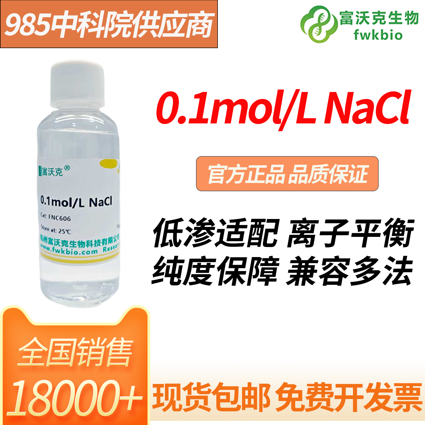 0.1mol/L NaCl溶液为核酸实验专用缓冲盐溶液,精准调控体系离子浓度,维持适宜低渗环境与离子平衡,助力核酸结合、洗脱等关键步骤高效进行。试剂纯度高、无杂质干扰,适配硅胶柱、磁珠法等多种核酸纯化流程,可与各类缓冲液协同使用,稳定实验体系,保障核酸提取的效率与纯度。