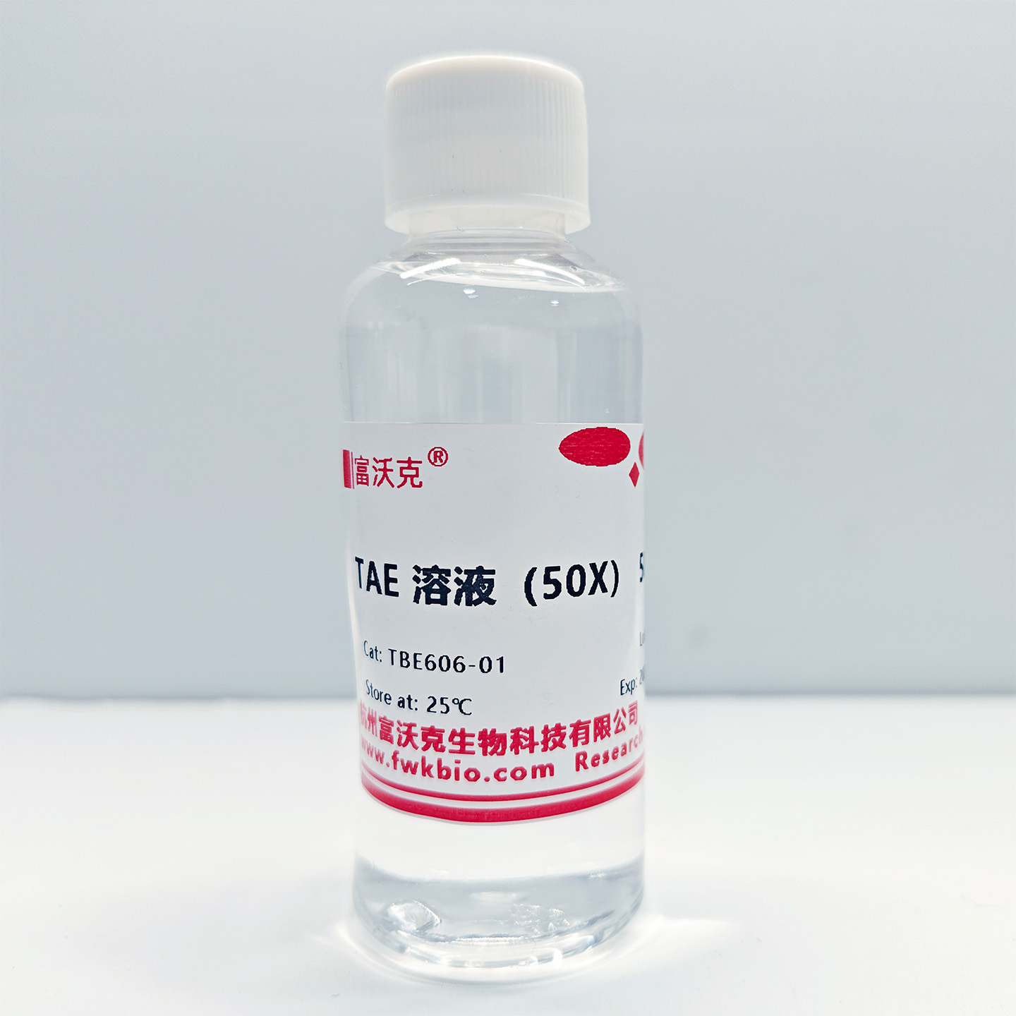 50X TAE是一种高浓度核酸电泳缓冲储备液,主要成分是Tris、乙酸和EDTA。稀释至1X工作液后,为DNA/RNA琼脂糖凝胶电泳提供稳定的pH与离子环境,实现核酸的高效分离。相比TBE缓冲液,TAE对大片段的分离效果更佳,且更便于后续的DNA胶回收纯化,是分子克隆与分析的常用标准缓冲体系。