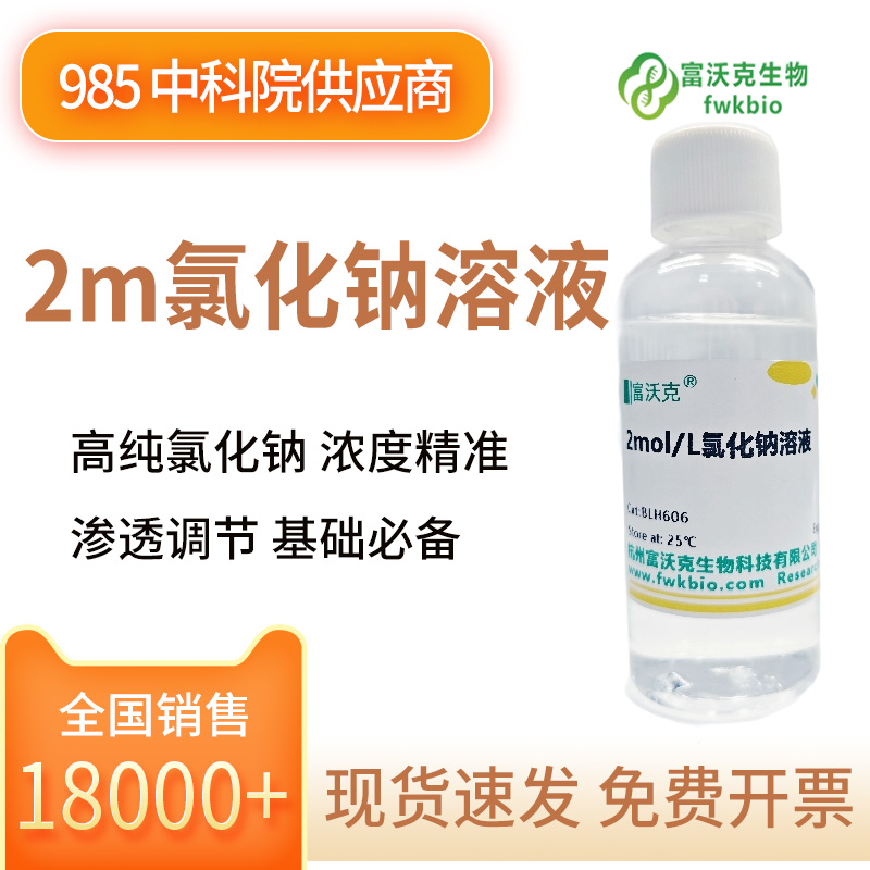 2M氯化钠溶液是一种高浓度的离子强度调节试剂。它广泛用于分子生物学和生物化学实验中,通过提供稳定的钠离子环境,起到维持渗透压、调节溶液离子强度及促进特定分子(如DNA在高盐条件下的沉淀)相互作用的关键作用。该溶液是核酸提取、蛋白纯化及多种缓冲液体系中的基础与核心组分。