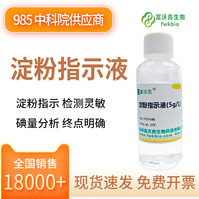 简要描述:淀粉指示液是由可溶性淀粉配制而成的专用检测试剂,其主要用途是在碘量法滴定中指示终点。当微量碘存在时,淀粉会与其形成灵敏的蓝色络合物;当碘被完全消耗(滴定终点),蓝色突然消失,指示反应完成。该反应灵敏、颜色变化鲜明,是氧化还原滴定中最经典和常用的终点指示方法之一。