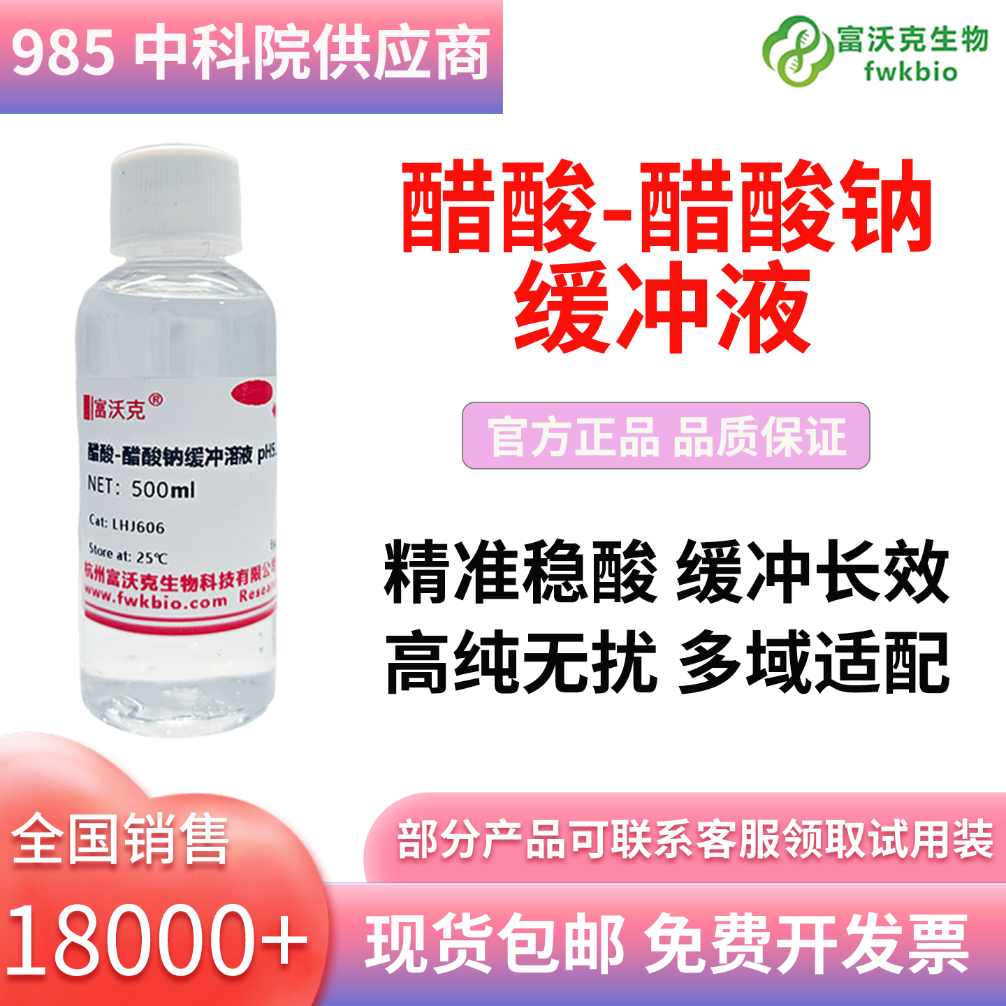 本缓冲溶液配比科学精准,pH 值稳定可控,抗酸碱干扰能力强,能有效维持体系酸碱度平衡。适用于生化实验、样品检测、分子生物学研究等场景,操作便捷,实验结果重复性好,是科研与质检的优质试剂。
