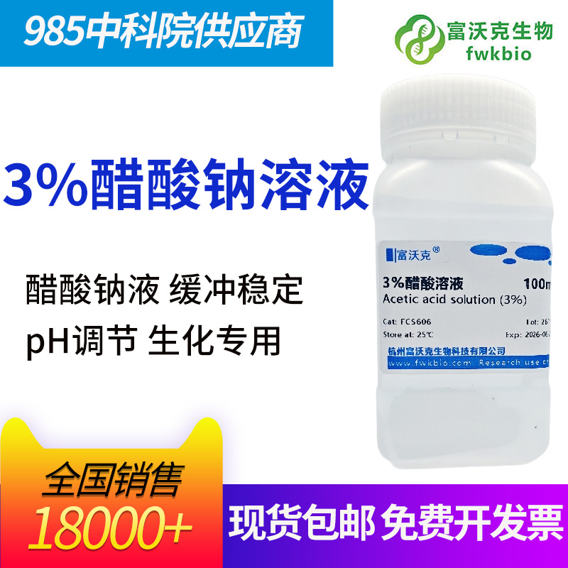 简要描述:3%醋酸钠溶液是一种温和的弱碱性缓冲试剂,其有效缓冲范围约为pH 5.0-7.0。在实验室中,它常用于调节生化反应的pH环境、作为蛋白质结晶条件筛选的组分。其性质温和、生物兼容性好,是生物化学与分子生物学研究中的常用基础缓冲液之一。