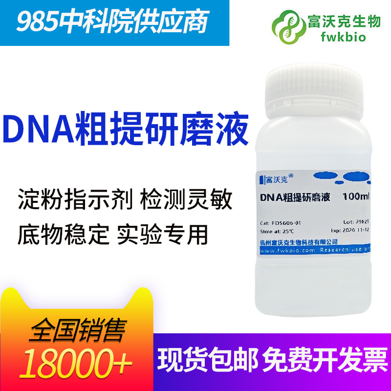 简要描述:DNA粗提研磨液是一种专为植物或动物组织快速提取基因组DNA设计的即用型裂解试剂。其配方含有高效去垢剂与核酸酶抑制剂,可在研磨过程中同步完成细胞破碎、核膜裂解及DNA释放。经简单离心后,上清液可直接用作PCR扩增模板。