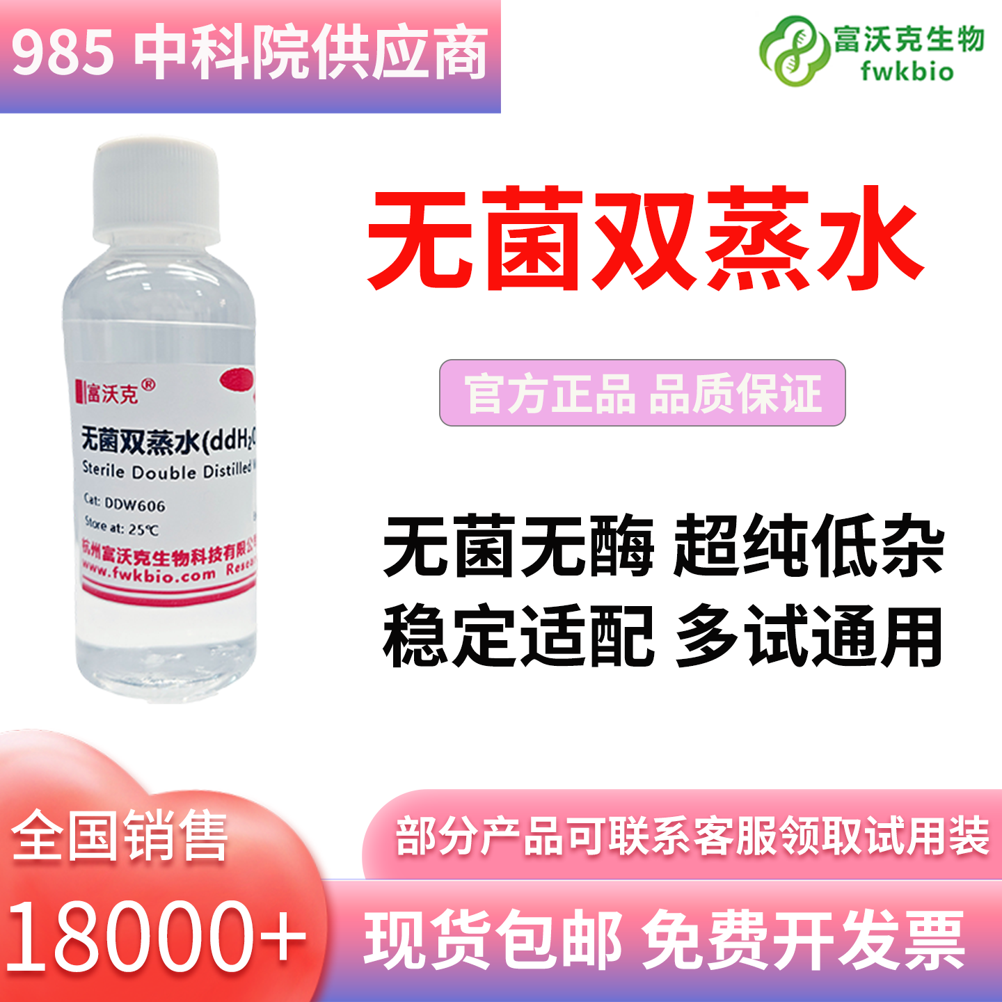 本品经双重蒸馏工艺精制,通过严格无菌处理,水质纯净无杂质、无热源、低电导率,可有效避免实验污染。适用于细胞培养、分子生物学实验、试剂配制、仪器冲洗等场景,兼容各类科研与质检操作,稳定性强,是实验室高要求实验的必备基础耗材。
