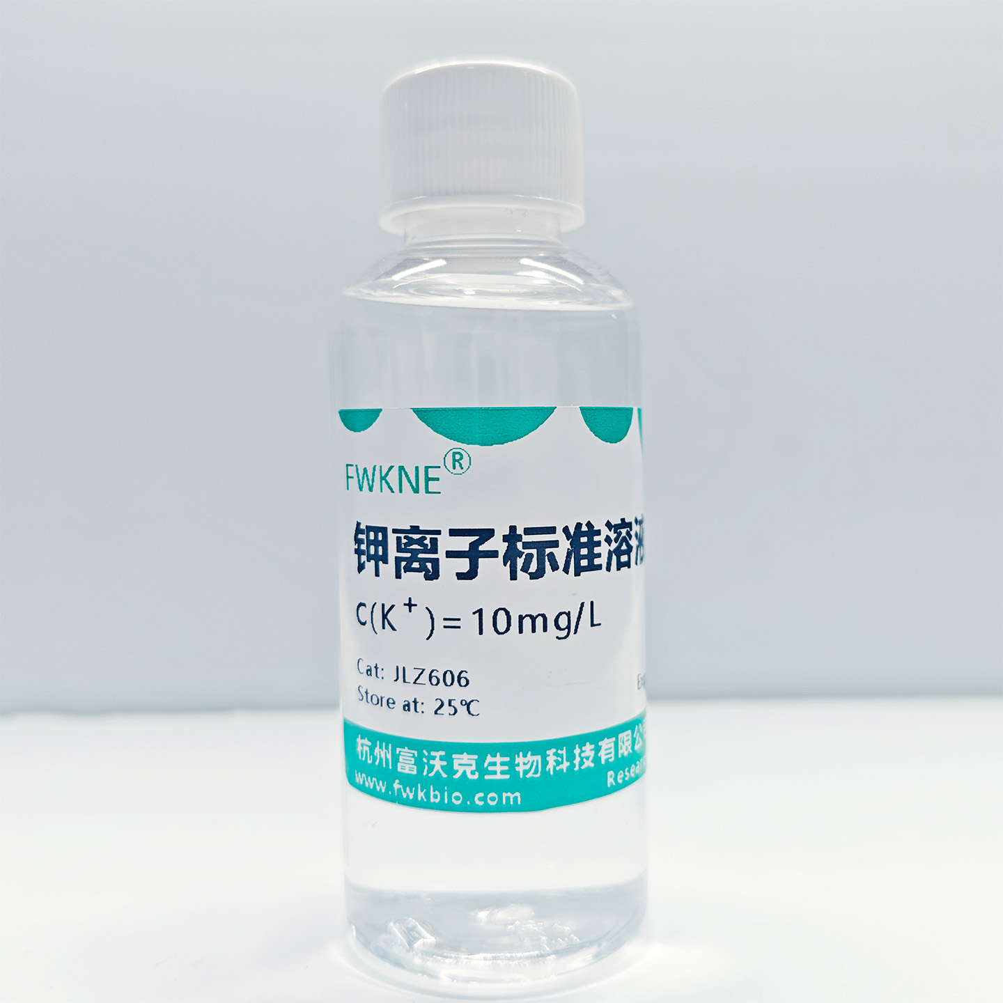 钾离子标准溶液 阳离子标准液 原子吸收光谱AAS校准 ICP-OES分析 CAS:7440-09-7 钾标准溶液,采用高纯氯化钾或硝酸钾为原料,在恒温洁净环境下以重量法精准配制,量值可溯源,浓度准确、稳定性好、均一性强。适用于原子吸收光谱(AAS)、电感耦合等离子体发射光谱(ICP-OES)、离子色谱(IC)、水质金属指标检测(如GB/T 5750.6)、土壤肥力测定、肥料成分分析、工业废水监测及仪器校准等多种场景。以超纯水为基质,杂质含量低,开瓶即用无需现场配制,操作便捷。