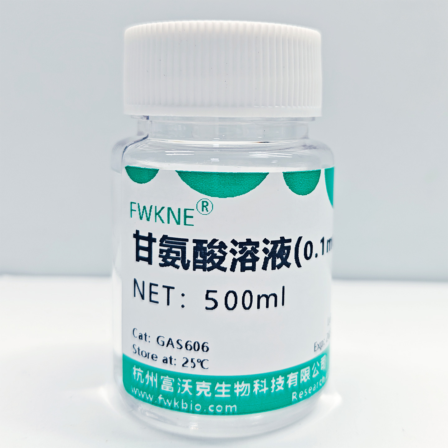 0.1M甘氨酸溶液 氨基乙酸溶液 电泳缓冲液 蛋白稳定剂 生物化学试剂 CAS:56-40-6 别名甘氨酸标准液、Gly溶液。采用高纯甘氨酸为原料,以超纯水在洁净环境精准配制,浓度准确(0.1mol/L)、澄清透明、无菌过滤,无DNase/RNase污染。适用于SDS-PAGE电泳缓冲液配制、蛋白稳定剂、组织培养、生物缓冲体系及实验室常规分析。以超纯水为基质,开瓶即用,操作便捷。需常温密闭保存,现货供应,欢迎分子生物学实验室及科研单位老师选购。