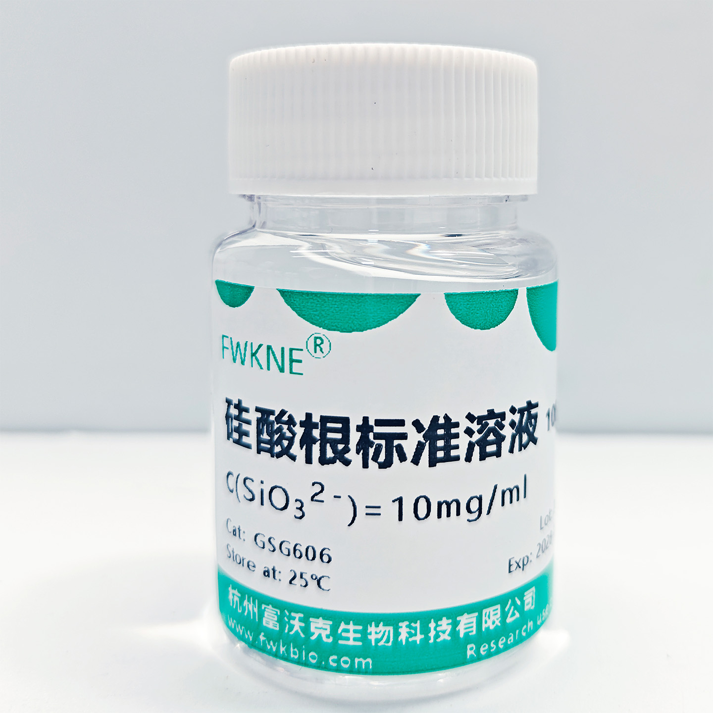 硅酸根标准溶液 偏硅酸根标准液 二氧化硅标准溶液 离子色谱校准 ICP-OES分析用 别名SiO₃²⁻标准溶液。采用高纯二氧化硅或硅酸钠为原料,以0.05mol/L氢氧化钠或碳酸钠为基质,在洁净环境下以重量-容量法精准配制,量值可溯源,浓度准确、稳定性好。适用于电感耦合等离子体发射光谱(ICP-OES)、电感耦合等离子体质谱(ICP-MS)、离子色谱(IC)、原子吸收光谱(AAS)及分光光度法检测。广泛用于水质环境监测、工业废水硅含量测定、锅炉水分析、土壤硅素养分检测、化工原料质检及仪器校准。以超纯水为溶剂,杂质含量低,开瓶即用,操作便捷。阴凉密闭保存,现货供应,欢迎环境监测站、第三方检测机构及实验室老师选购。