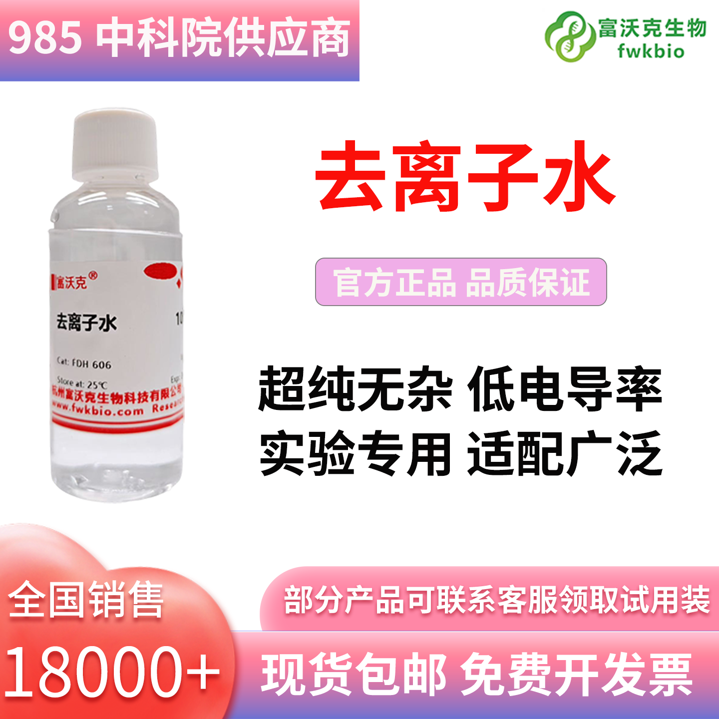 富沃克生物去离子水,经多级精密工艺深度提纯,离子脱除彻底,水质纯净无杂质干扰,电导率稳定达标。适配分子生物学实验、试剂配制、仪器清洗等多场景,即取即用无需预处理。批间品质一致,能有效保障实验结果的精准性与重复性,是科研与质检的优质用水选择。