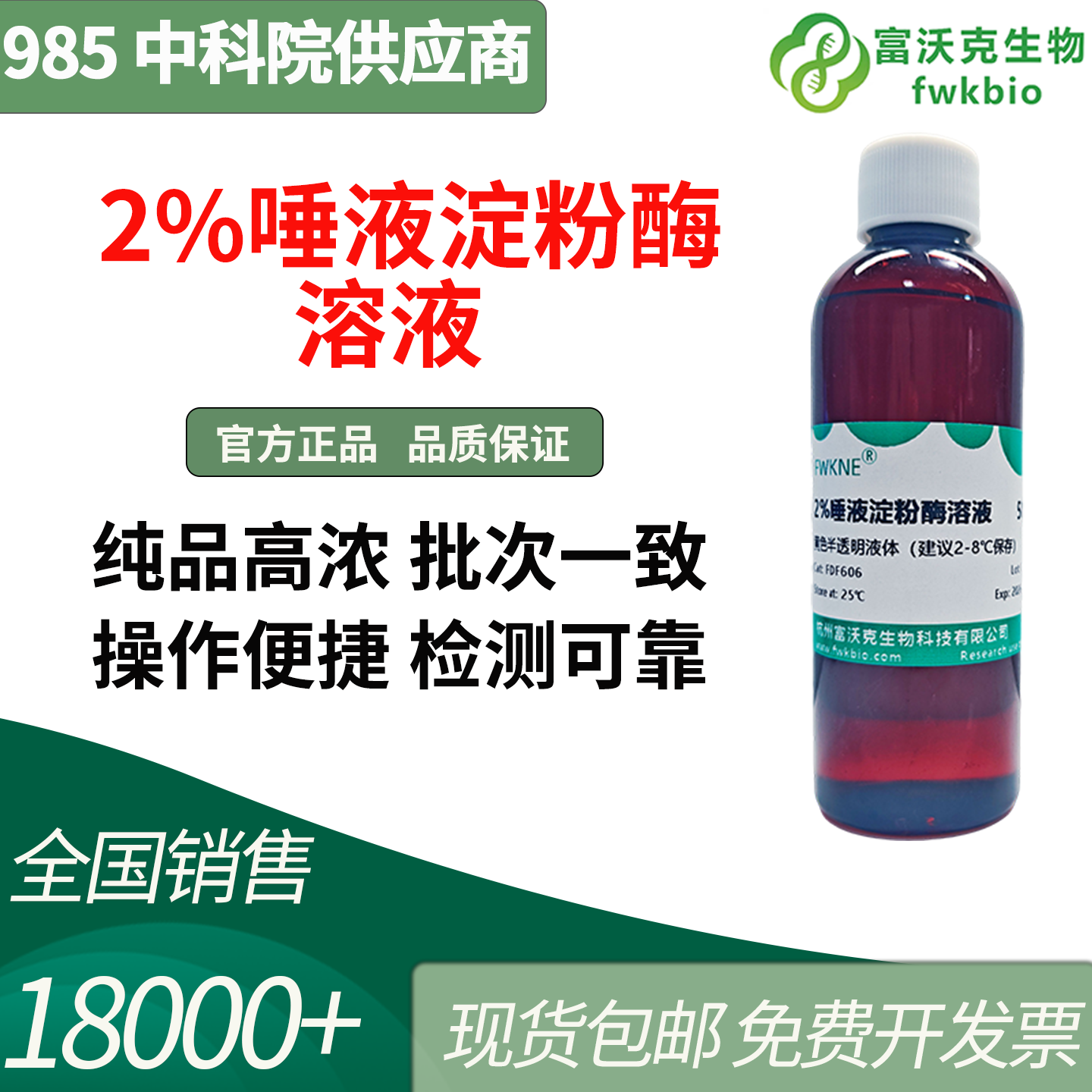 本2%唾液淀粉酶溶液为即配即用型试剂,酶活精准稳定、批次一致性高,纯品精制无杂蛋白干扰。溶液均一无沉淀,滴加式操作便捷,无需额外复配活化,适配酶促反应、生化实验、教学演示等多场景,检测结果精准可重复,是生化实验室常规实验的优选试剂。