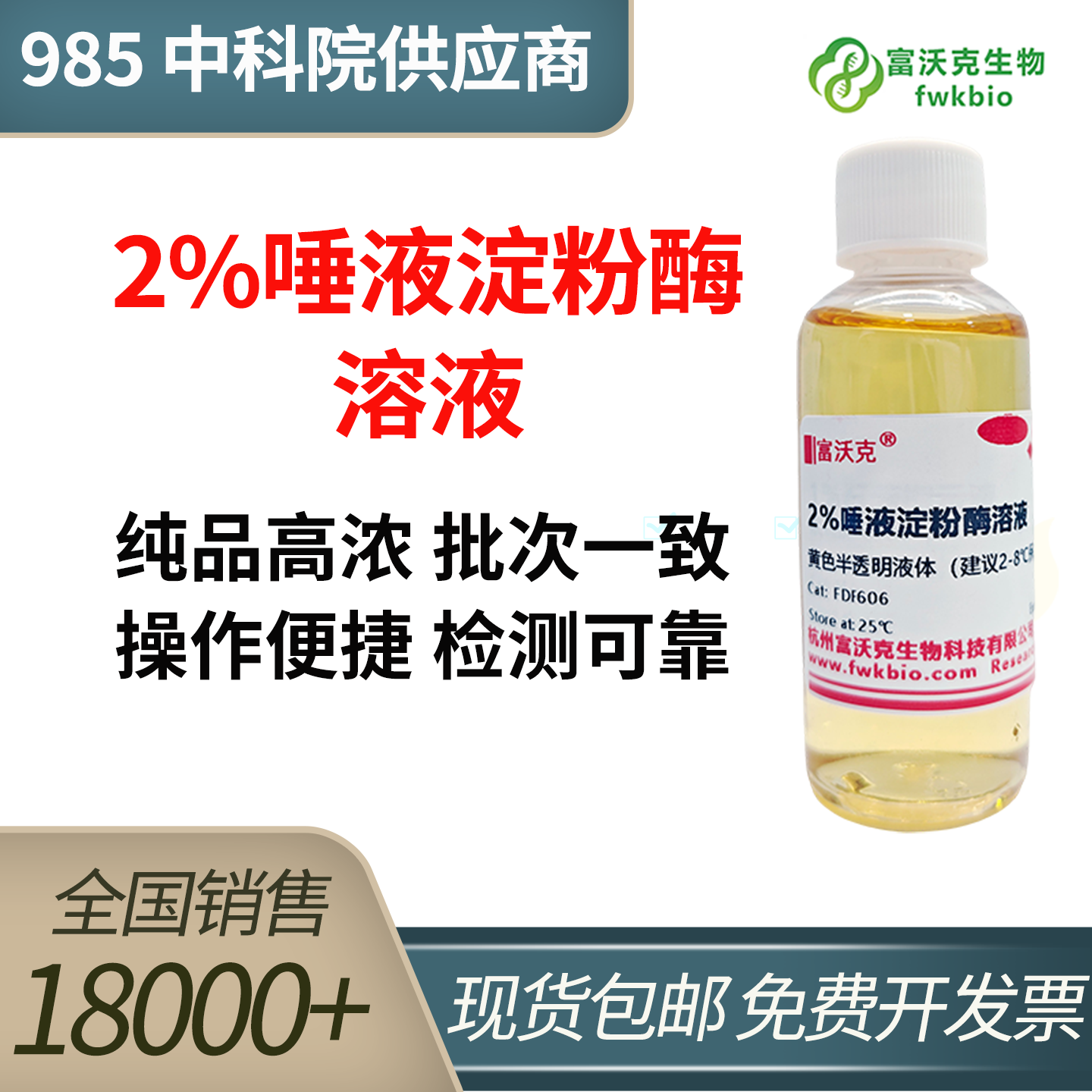 本2%唾液淀粉酶溶液为即配即用型试剂,酶活精准稳定、批次一致性高,纯品精制无杂蛋白干扰。溶液均一无沉淀,滴加式操作便捷,无需额外复配活化,适配酶促反应、生化实验、教学演示等多场景,检测结果精准可重复,是生化实验室常规实验的优选试剂。