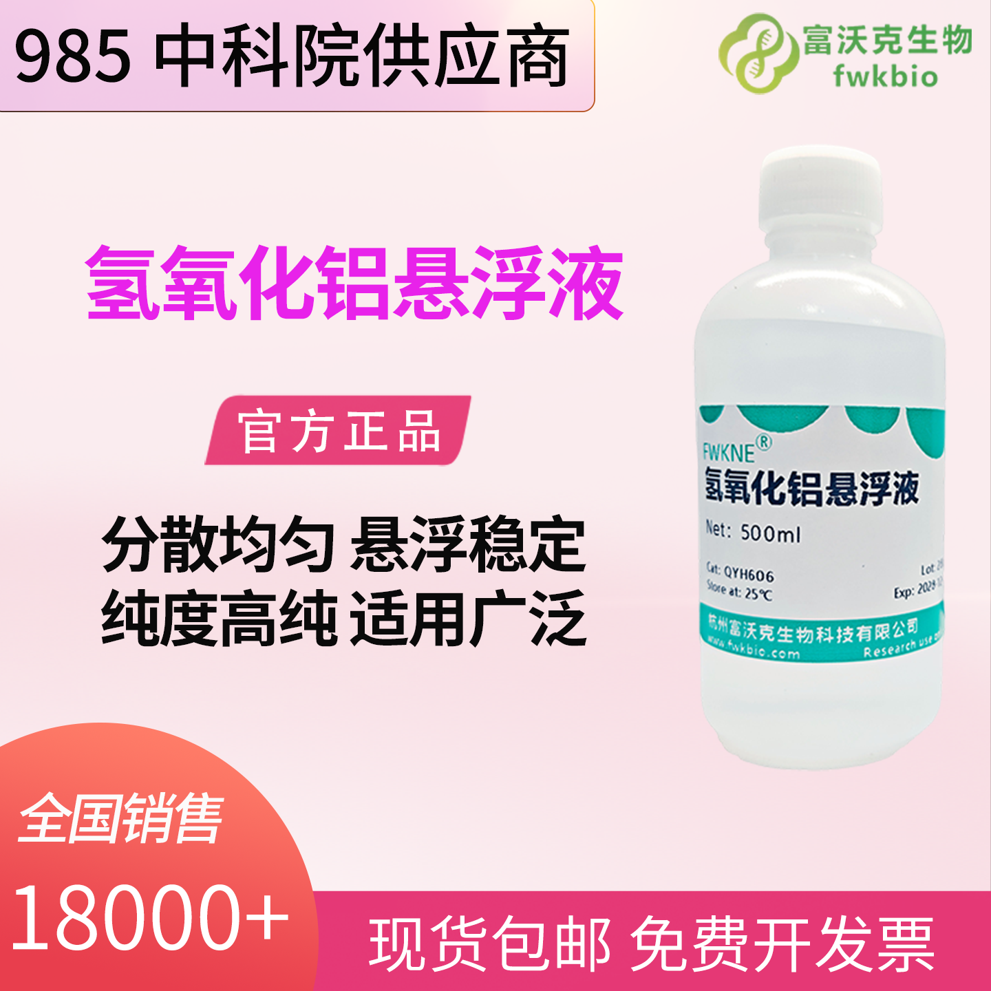 简要描述:本氢氧化铝悬浮液采用高纯原料精制,颗粒细腻、分散均匀、长期稳定不沉降。适用于水质处理、化学分析、样品前处理等场景,吸附性能优良,无杂质干扰,使用方便,可有效提升实验与检测效果,是实验室及工业分析中常用的辅助试剂。淘宝购买链接:厂家联系微信号(同手机号):19850855600或扫二维码添加微信,可免费领取试用装