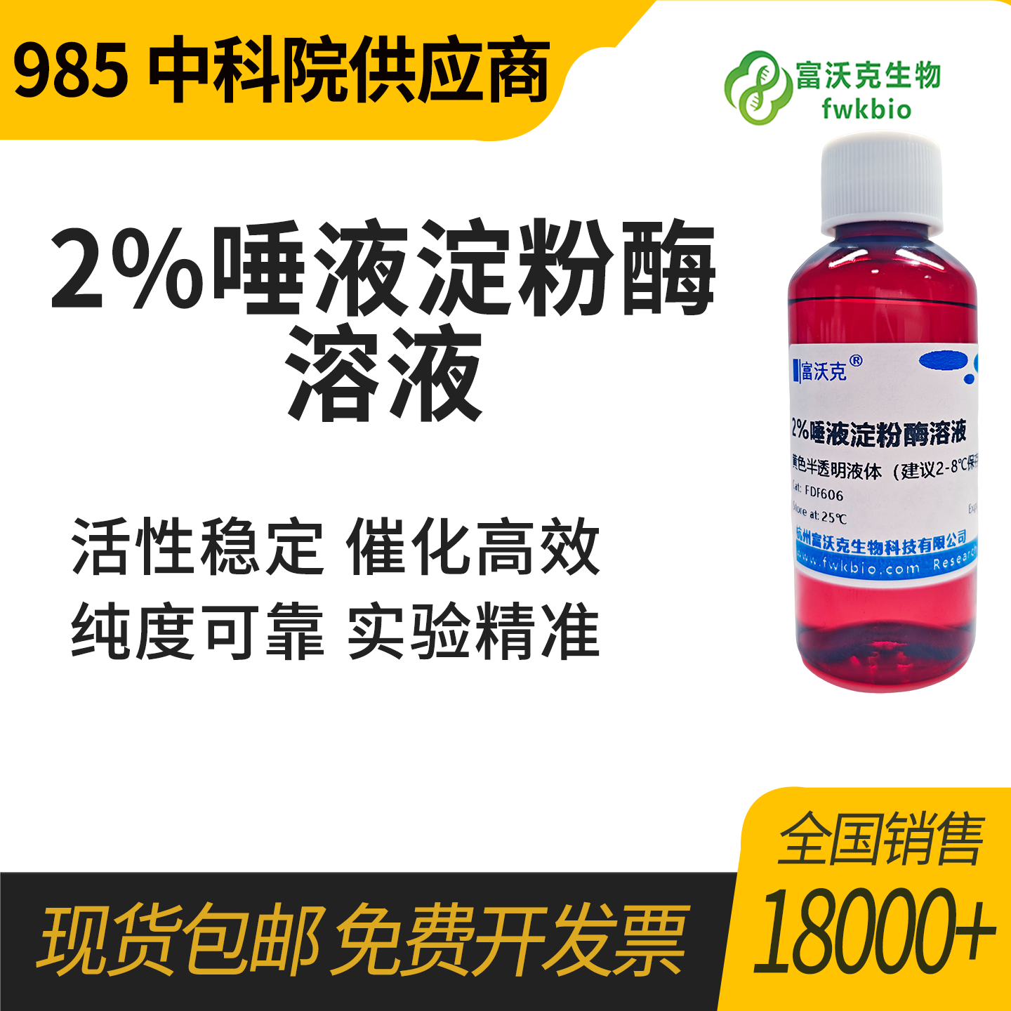 本2%唾液淀粉酶溶液为即配即用型试剂,酶活精准稳定、批次一致性高,纯品精制无杂蛋白干扰。溶液均一无沉淀,滴加式操作便捷,无需额外复配活化,适配酶促反应、生化实验、教学演示等多场景,检测结果精准可重复,是生化实验室常规实验的优选试剂。