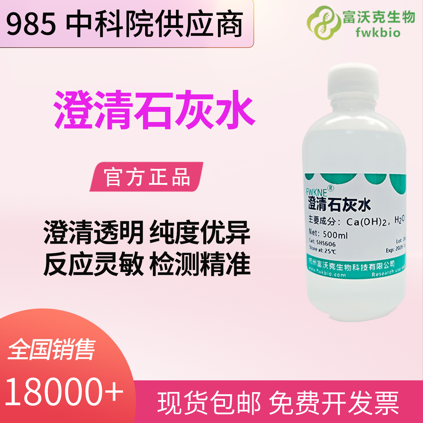 实验教学专用澄清石灰水,甄选高纯原料精制而成,多重精密过滤,溶液澄清无杂质、无悬浮物、不易沉淀