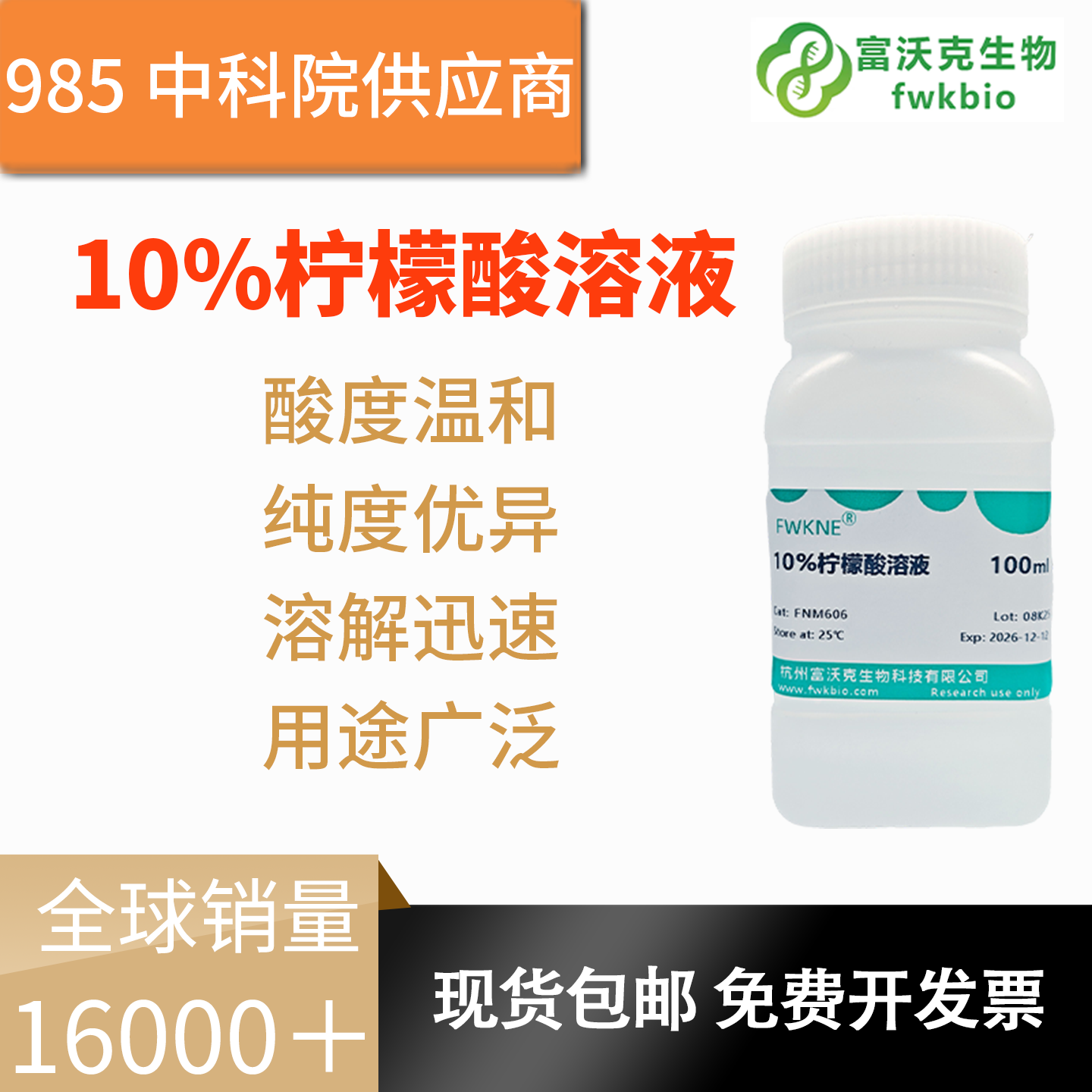 科研实验教学专用 10% 柠檬酸溶液,采用高纯原料精准配比,浓度恒定、溶液清澈均质