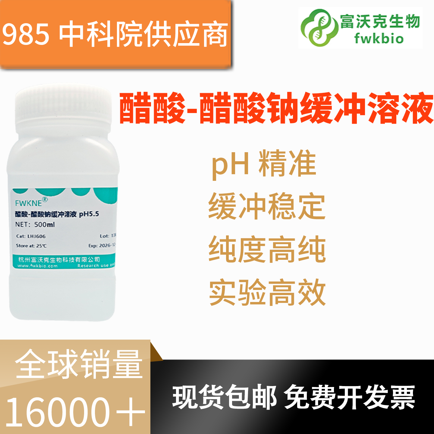 科研实验教学专用醋酸 - 醋酸钠缓冲溶液,采用高纯原料精准调配,pH 值稳定均衡,缓冲性能优异